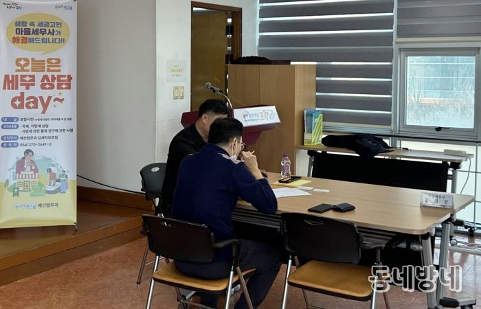 동네방네 김형규 기자 | 포항시는 지난 19일 두호동 행정복지센터에서 시민들의 세금 고민을 해결해 주는 ‘찾아가는 마을세무사 상담 데이’를 개최했다.