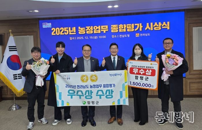 함평군은 지난 19일 전라남도청 서재필실에서 열린 2025년 전남 농정업무 종합평가에서 우수상을 수상했다고 22일 밝혔다.