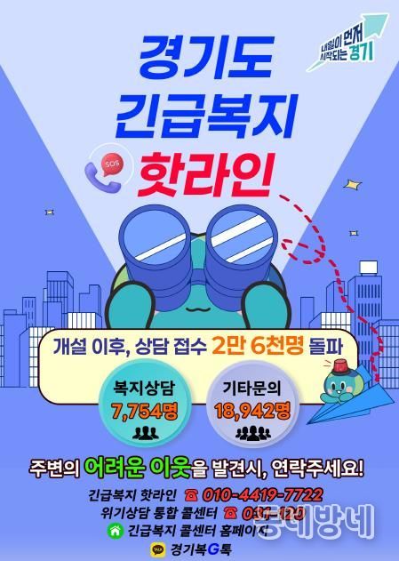 경기도가 2022년 8월부터 위기도민 발굴을 위해 ‘긴급복지 핫라인’을 운영한 결과 3년 3개월 만에 상담 접수 2만 6천 명을 넘어섰다.