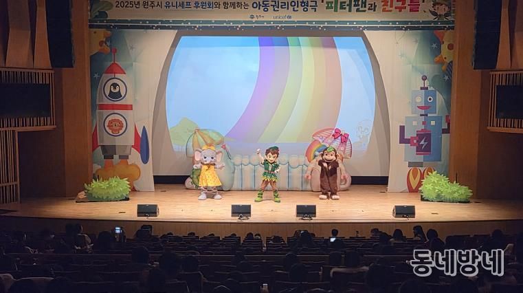 동네방네 김형규 기자 | 원주시는 아동의 권리에 대한 이해를 높이고 존중 문화를 확산하기 위해 지난 19일 치악예술관에서 유니세프 원주시후원회(회장 김효종)와 함께 아동권리교육 인형극 ‘피터팬과 친구들’ 공연을 진행했다.