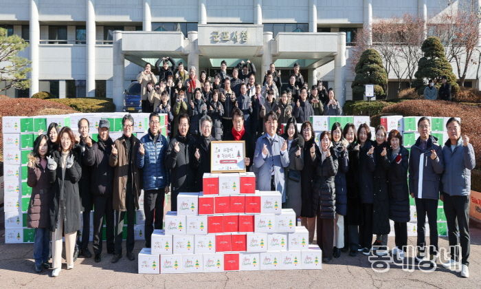 동네방네 김형규 기자 | 군포시는 지난 18일 안양시 동안구에 위치한 새중앙교회로 부터 크리스마스를 맞아 일상생활에서 꼭 필요한 기본 식료품으로 구성한 꾸러미‘사랑의 천사박스’1,004상자를 기탁받았다고 밝혔다.