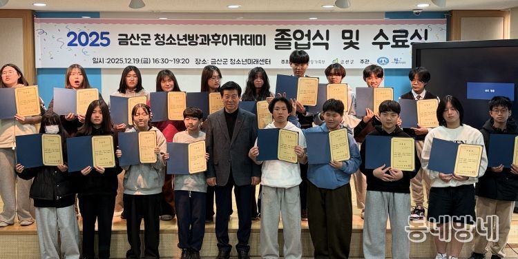 동네방네 김형규 기자 | 금산군은 지난 19일 금산군청소년미래센터에서 2025년 청소년방과후아카데미 졸업 및 수료식을 개최했다.