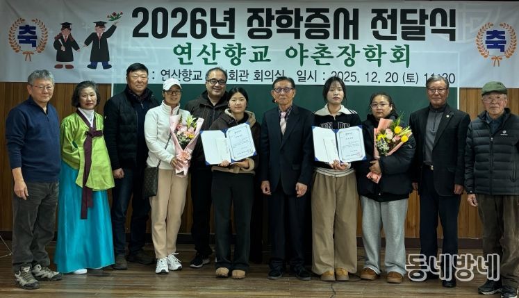 연산향교 관계자는 “야촌장학회는 지역 사회의 교육 발전과 인재 양성에 꾸준히 기여해 왔다”며 “앞으로도 지속적인 장학사업을 통해 지역의 미래 인재들이 꿈을 키워갈 수 있도록 적극 지원하겠다”고 전했다.