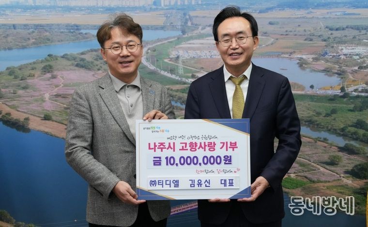 동네방네 김형규 기자 | 전라남도 나주시는 ㈜티디엘 김유신 대표가 지역 발전을 응원하기 위해 고향사랑기부금 1천만 원을 기탁했다고 22일 밝혔다.