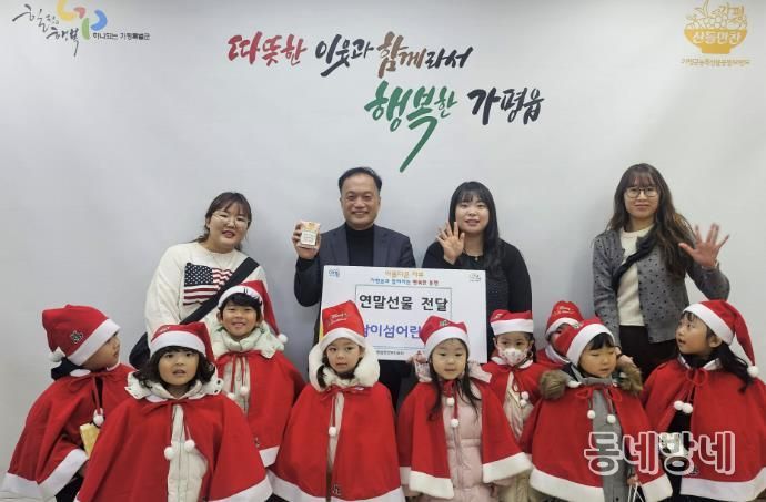 동네방네 김형규 기자 | 가평군 가평읍 소재 남이섬어린이집 선생님과 아이들은 지난 19일 가평읍 행정복지센터를 방문해 따뜻한 연말 선물을 전달했다.
