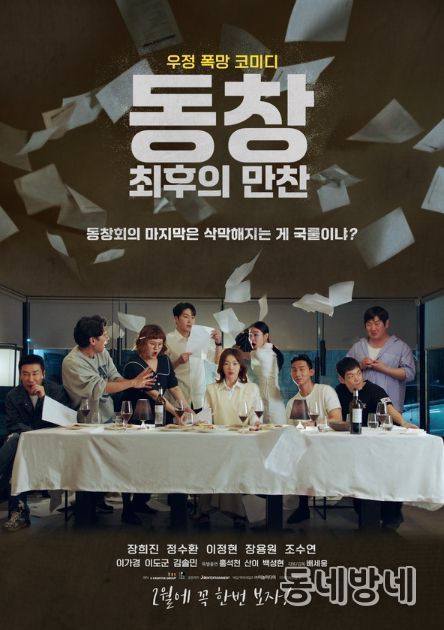 한편, 이번에 공개된 메인 포스터는 마치 레오나르도 다빈치의 명작 ‘최후의 만찬’을 떠올리게 하며 눈길을 사로잡는다. 흩날리는 종이와 함께 놀란 얼굴로 테이블에 둘러앉은 동창들의 모습이 호기심을 자극한다.