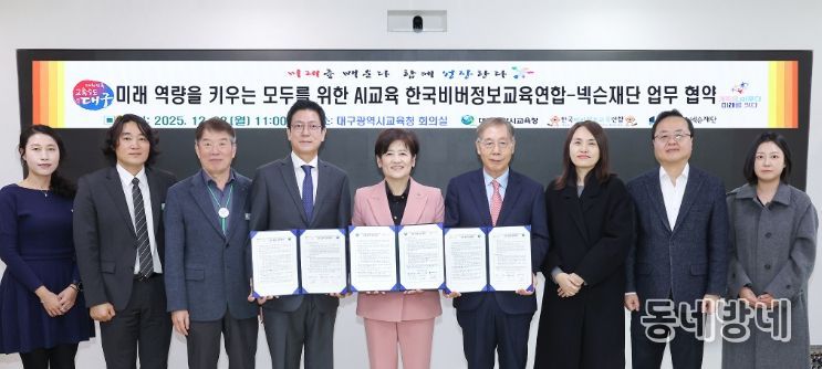동네방네 김형규 기자 | 대구시교육청은 12월 22일 오전 11시, 시교육청 회의실에서 ‘한국비버정보교육연합(회장 김동윤)’,‘넥슨재단’과 인공지능 시대에 필요한 미래 핵심 인재 양성을 위한 3자 업무협약을 체결했다고 밝혔다.