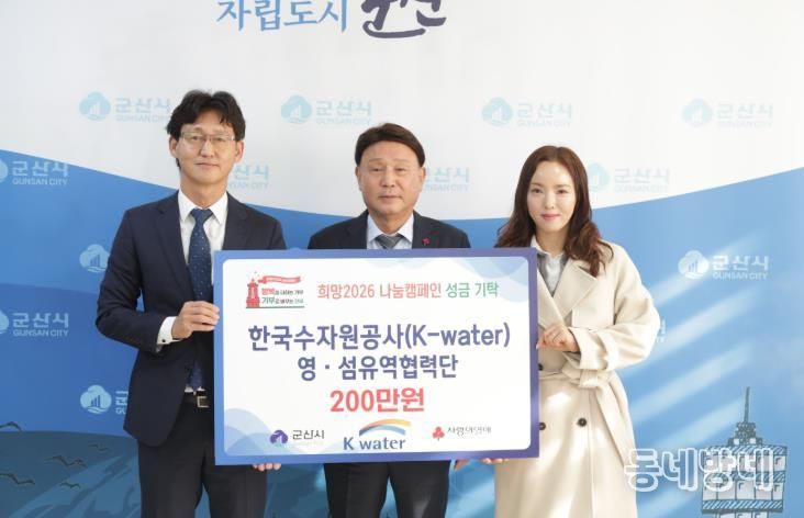 동네방네 김형규 기자 | 한국수자원공사 영·섬유역협력단이 연말을 맞아 취약계층과 따뜻한 정(情)을 나누고자 기부금 200만 원을 22일 군산시에 전달했다.