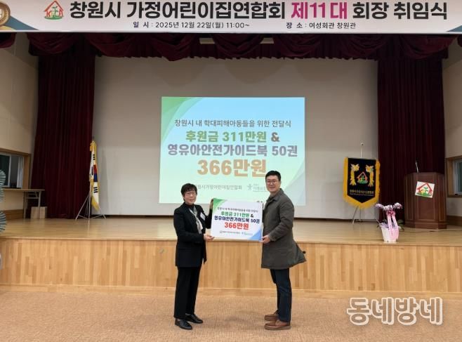 동네방네 김형규 기자 | 창원특례시는 창원시가정어린이집연합회에서 22일 개최된 제10·11대 회장 이취임식을 맞이하여 관내 학대피해아동을 지원하기 위한 후원금과 도서를 창원시아동보호전문기관에 전달했다고 밝혔다.