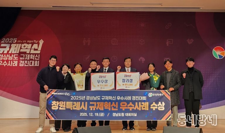 동네방네 김형규 기자 | 창원특례시는 19일 경상남도가 주관한 ‘2025년 경상남도 규제혁신 우수사례 경진대회’에서 우수상과 장려상을 각각 수상했다고 밝혔다.