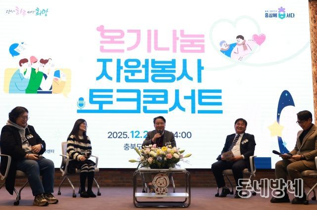 동네방네 김형규 기자 | 충청북도는 충청북도종합자원봉사센터와 함께 ‘온기나눔 자원봉사 토크콘서트’를 22일 도청 대회의실에서 참여 신청을 받은 자원봉사자와 도, 시‧군 자원봉사센터 직원 등 100여명이 참석한 가운데 개최했다.