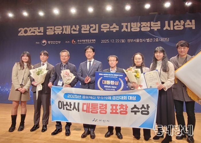 동네방네 김형규 기자 | 아산시는 행정안전부가 주관한 ‘2025년 공유재산 우수 지방자치단체 시상식’에서 우수사례 경진대회 부문 전국 1위에 해당하는 대통령상을 수상했다고 22일 밝혔다.