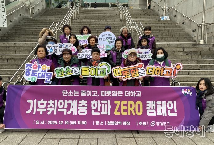 동네방네 김형규 기자 | 매서운 한파가 반복되는 겨울, 동대문구가 ‘현장형’ 대응에 나섰다. 서울 동대문구는 겨울철 한랭질환에 취약한 어르신의 건강 피해를 줄이고, 난방기 사용이 늘어나는 계절에 생활 속 탄소중립 실천을 확산하기 위해 ‘기후 취약계층 한파 ZERO 캠페인’을 추진한다고 밝혔다.