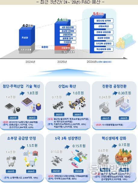 동네방네 김형규 기자 | 중소벤처기업부와 산업통상부는 양 부처가 추진하는 R&D사업의 지원내용·대상·절차·일정 등을 담은 ‘26년도 R&D사업 통합시행계획’을 함께 공고한다고 밝혔다.