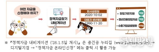 중소기업 정책자금은 중소벤처기업진흥공단 누리집을 통해 내년 1월 5일부터 신청할 수 있다. 서울과 지방 소재 기업은 1월 5~6일(월, 화), 경기 및 인천 소재 기업은 1월 7~8일(수, 목) 양일간 신청이 가능하다.