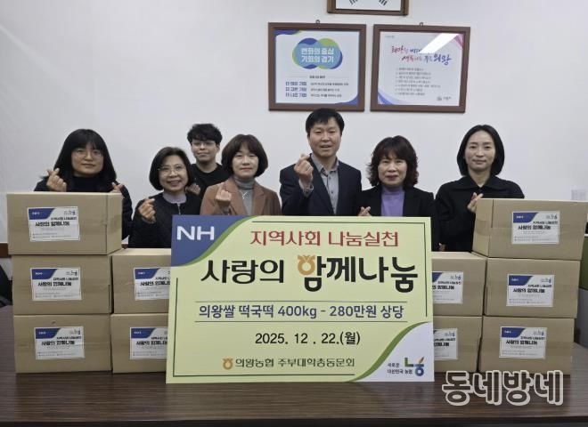 최석우 부곡동장은“연말마다 잊지 않고 이웃을 위한 나눔을 실천해 주시는 의왕농협주부대학총동문회 회원들께 깊이 감사드린다”며, “후원해 주신 떡국떡을 돌봄이 필요한 이웃들에게 정성과 마음을 담아 잘 전달하겠다”고 전했다.