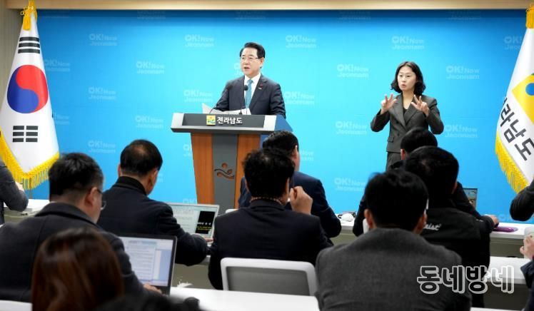 동네방네 김형규 기자 | 김영록 전라남도지사는 23일 도청 브리핑룸에서 2025년 송년기자간담회를 열어 국고 10조 시대 개막, AI·에너지 미래기반 대거 마련 등 민선 7·8기 성과를 설명하고, 전남 대부흥 비전과 2026년 도정 방향을 발표했다.