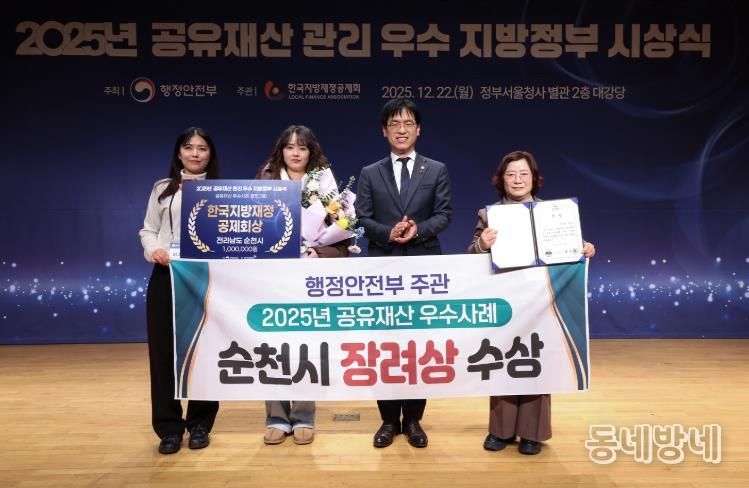 동네방네 김형규 기자 | 순천시는 지난 22일 행정안전부 주관으로 정부서울청사에서 열린 ‘2025년 공유재산 우수 지방단체 시상식’에서 공유재산 우수사례 경진대회 부분 ‘장려상’을 수상했다고 밝혔다.