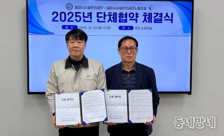 동네방네 김형규 기자 | 밀양시시설관리공단은 23일 밀양시시설관리공단 노동조합과 2025년도 단체협약을 체결했다.