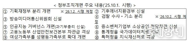 먼저, 정부조직개편은 특정 부처에 집중된 기능과 권한을 재배치하고, 기후 변화, AI 대전환 등 미래 위기에 선제적으로 대응하기 위해 기획재정부 분리 개편, 기후에너지환경부 신설 등을 중심으로 추진했다.