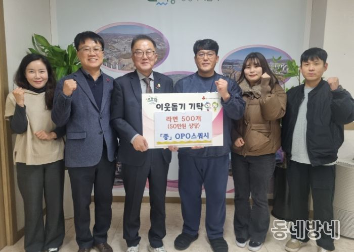 동네방네 김형규 기자 | OPO스쿼시 강인석 대표는 23일 어려운 이웃에게 전달해 달라며 광주시 오포1동에 라면 500개(50만 원 상당)를 기탁했다.
