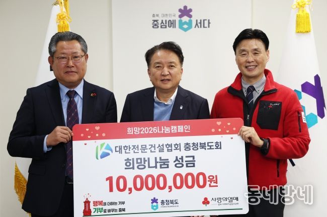 김영환 지사는 “지역 건설업계가 경기 침체 등 어려운 여건 속에서도 나눔을 실천해 주신 데 깊이 감사드린다”며 “이번 성금이 도내 소외된 이웃들에게 따뜻한 위로와 희망이 되기를 기대한다”고 밝혔다.