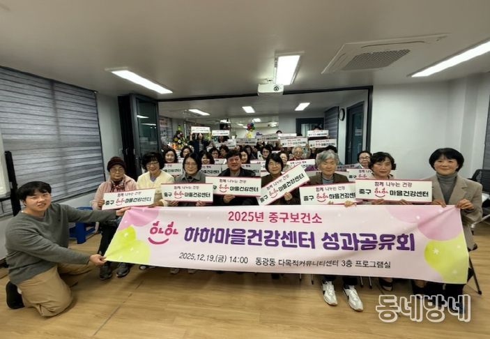 중구청 관계자는 “이번 성과공유회는 주민들이 건강한 마을을 만들기 위해 고민하고 실천해 온 결실을 확인하는 자리”라며, “오늘 공유한 소중한 경험들을 발판 삼아, 내년에도 하하마을건강센터를 중심으로 함께 건강하고 행복한 중구를 만드는 데 앞장서겠다”라고 전했다.