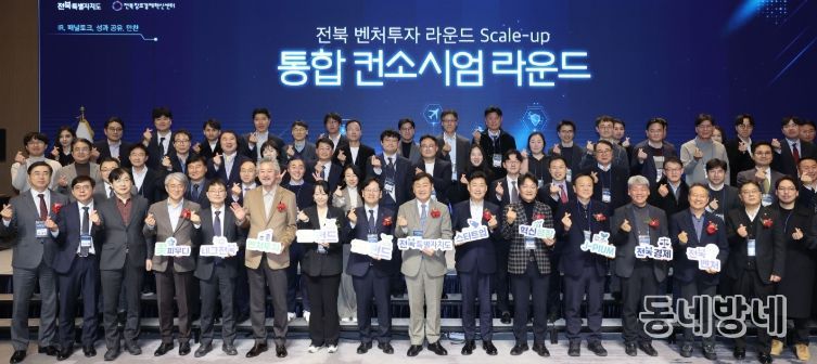 도는 23일 전주 라한호텔에서 ‘전북 벤처투자 라운드 SCALE-UP 통합 컨소시엄’ 행사를 개최하고, 벤처펀드 누적 결성액이 1조 184억 원을 기록했다고 밝혔다. 이날 행사에는 김관영 전북자치도지사와 이대희 한국벤처투자 대표이사, 유동준 엔젤투자협회 부회장을 비롯해 정책 출자기관장, 투자사(VC·AC), 스타트업 대표 등 200여 명이 참석했다.
