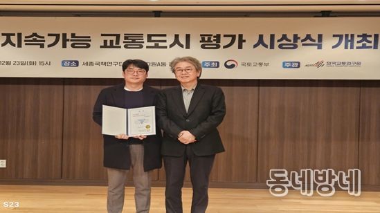 이번 시상식은 지난 12월 23일 세종시 국책연구단지 연구지원 A동에서 개최됐으며, 국토교통부와 한국교통연구원 관계자를 비롯해 전국 지방자치단체 교통·환경 분야 담당 공무원 등 100여 명이 참석한 가운데 진행됐다.