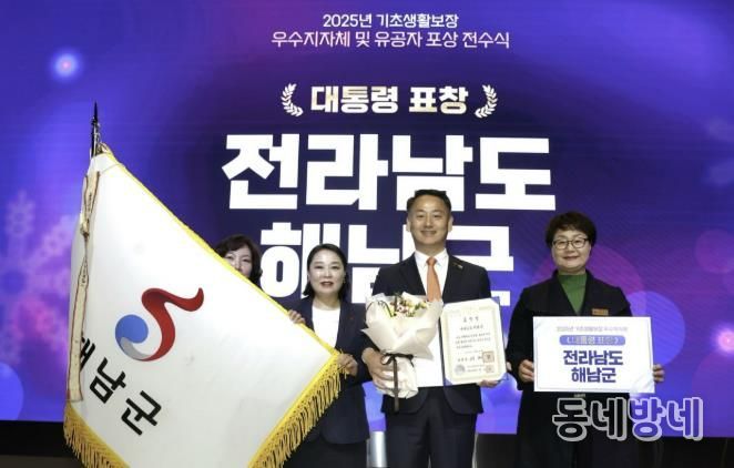 동네방네 김형규 기자 | 해남군이 보건복지부 주관 2025년 기초생활보장 우수지자체 및 유공자 포상 전수식에서 최고 영예인 대통령 표창을 수상했다.