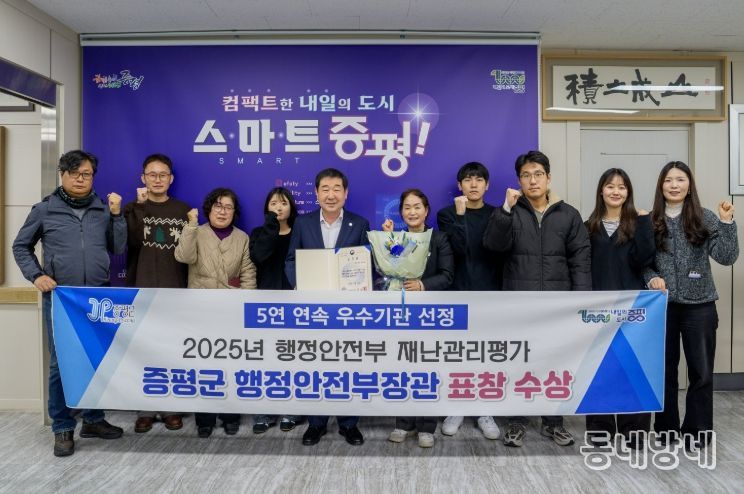 군 관계자는 “5년 연속 최우수기관 선정은 군민의 안전을 최우선 가치로 두고 전 부서가 함께 노력해 온 결과”라며 “앞으로도 선제적 재난관리와 현장 중심 대응을 통해 군민이 안심하고 생활할 수 있는 안전한 증평을 만들어 가겠다”고 밝혔다.