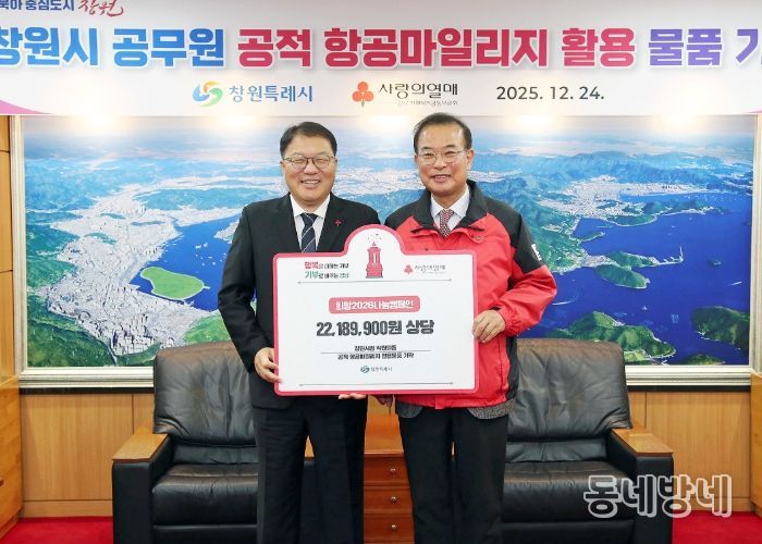 동네방네 김형규 기자 | 창원특례시는 24일 시청 접견실에서 장금용 시장 권한대행과 강기철 경남사회복지공동모금회장을 비롯한 관계자 등이 참석한 가운데 공적 항공마일리지를 활용한 생활용품 전달식을 개최했다.
