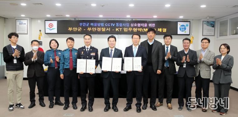 동네방네 김형규 기자 | 부안군은 12월 24일, KT 및 부안경찰서와 업무협약(MOU)을 체결하고 군민 안전 확보와 범죄 예방을 위한 ‘부안군 마을방범 CCTV 통합사업’을 본격적으로 추진한다.