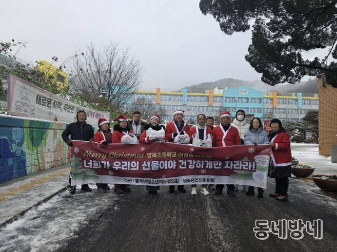 동네방네 김형규 기자 | 포천시 영북면 청소년지도협의회와 영북면 주민자치회는 24일 크리스마스 이브를 맞아 영북초등학교 앞에서 지역 어린이들을 위한 크리스마스 선물 나눔 행사를 개최했다.