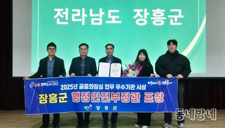 동네방네 김형규 기자 | 장흥군이 공중화장실 관리·운영 업무에 대한 공로를 인정받아 23일 행정안전부로부터 공중화장실 업무 유공 기관표창을 수상했다.