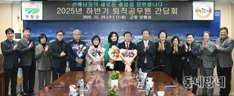 동네방네 김형규 기자 | 거창군은 지난 24일 군청 상황실에서 퇴직을 앞둔 공무원들의 공직생활의 노고와 헌신에 대한 감사를 전하기 위해 ‘2025년 하반기 퇴직공무원 간담회’를 개최했다.