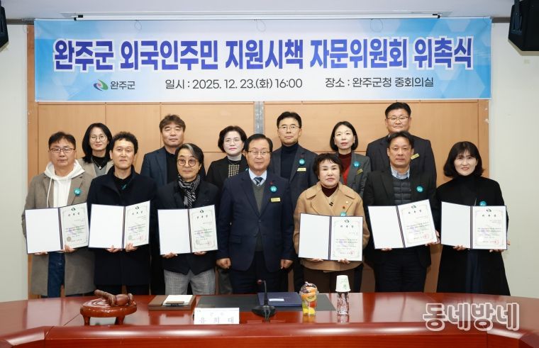 동네방네 김형규 기자 | 완주군이 외국인 주민 지원 정책의 체계적 추진을 위해 ‘외국인주민 지원시책 자문위원회’를 구성하고, 지난 23일 중회의실에서 위촉식을 열었다.