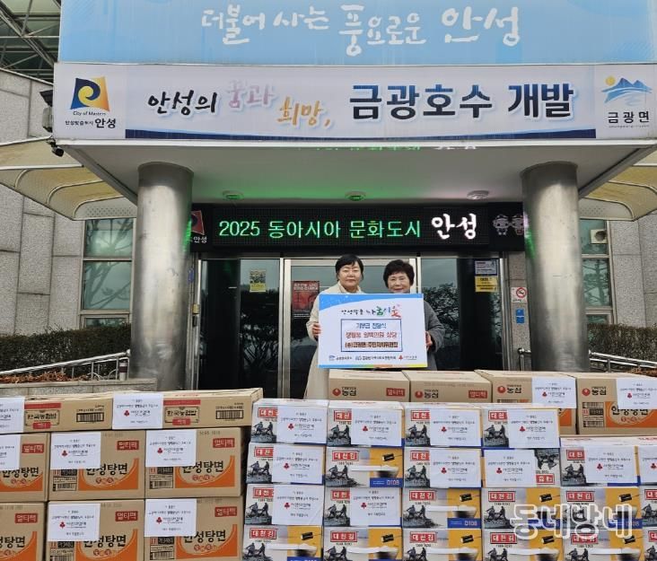 동네방네 김형규 기자 | 안성시는 12월 23일, 금광면 주민자치위원회 양영순 위원장이 겨울철 취약계층 가구의 따뜻한 겨울나기를 돕기 위해 라면, 김 등 생필품 100만원 상당을 금광면 행정복지센터에 기탁했다고 밝혔다.