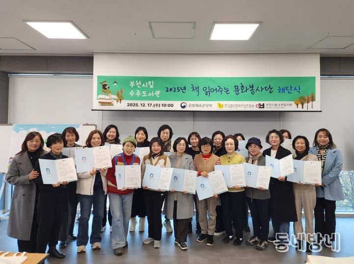 동네방네 김형규 기자 | 부천시립수주도서관은 지난 17일 ‘2025 책 읽어주는 문화봉사단’의 활동을 마무리하고, 사업 성과 공유회와 해단식을 개최했다고 밝혔다.