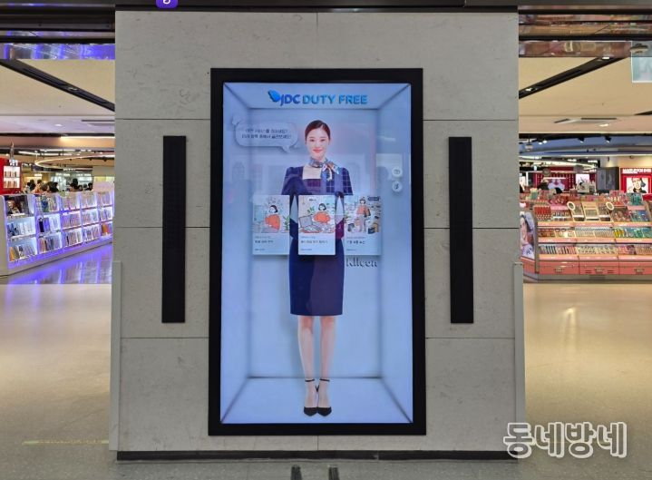 JDC면세점은 국내 면세점 업계 최초로 최신형 무안경 3D 디스플레이와 양방향 소통형 AI 가상 모델 제이디(J-Di)′를 결합한 차세대 스마트 안내 시스템을 전격 도입했다고 24일 밝혔다.