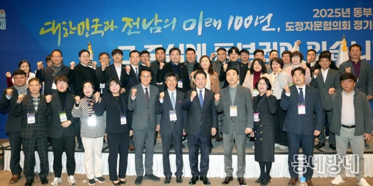 동네방네 김형규 기자 | 전라남도는 24일 순천 에코그라드호텔에서 ‘2025 동부지역 도정자문협의회 정기총회’를 열어 석유화학·철강산업 AI 기반 고도화, K-우주항공·방산 혁신벨트 조성 등 동부권 발전 방향과 중장기 전략을 논의했다.