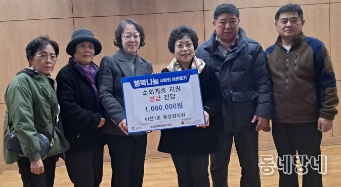 동네방네 김형규 기자 | 평택시 비전1동 통장협의회는 지난 17일, 연말을 맞아 관내 어려운 이웃을 위해 써달라며 이웃돕기 성금 100만 원을 비전1동 행정복지센터에 기부했다.
