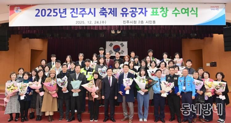 동네방네 김형규 기자 | 진주시는 24일 시청에서 올해 축제의 성공적인 개최에 기여한 유공자들의 노고와 헌신을 기리기 위해 ‘2025년 진주시 축제 유공 표창 수여식’을 개최했다.