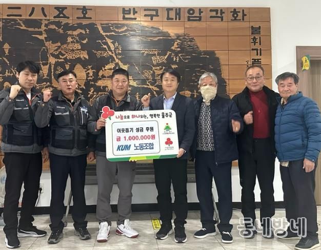 동네방네 김형규 기자 | KUM노동조합이 24일 울주군 두서면 취약계층을 돕기 위해 성금 100만원을 기탁했다.
