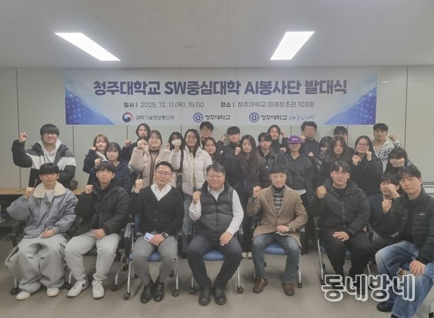 동네방네 김형규 기자 | 충청북도는 12월 11일 청주대학교 미래창조관에서 청주대학교 AI봉사단(1기, 30명)을 출범하고, 도내 AI 역량 강화를 위한 지역 밀착형 교육을 본격 추진한다고 밝혔다.