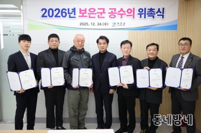 동네방네 김형규 기자 | 충북 보은군은 24일 군청 회의실에서 2026년 가축방역사업의 원활한 추진과 청정 축산지역 유지를 위해 군내 개업 수의사 8명에게 공수의 위촉장을 수여했다.