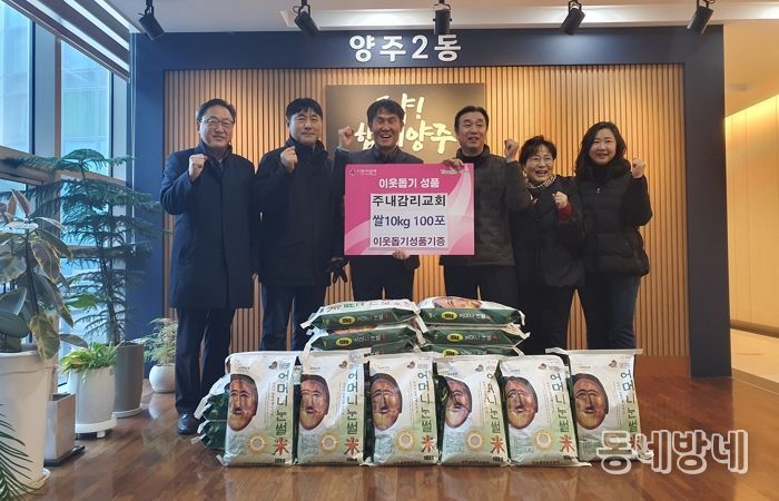 동네방네 김형규 기자 | 양주2동은 지난 24일 양주시 만송동 소재 주내감리교회가 연말을 맞아 쌀 10kg 100포를 기탁했다고 전했다.