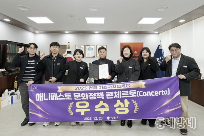 동네방네 김형규 기자 | 성남시는 ‘2025 전국 기초자치단체장 매니페스토 문화정책 콘체르토(Concerto)’ 대회에서 신인 예술인 등용문인 ‘성남(SN) 탤런트’ 사업 성과를 인정받아 문화 활동 활성화 분야 우수상을 받았다고 26일 밝혔다.