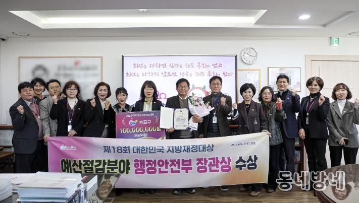 동네방네 김형규 기자 | 마포구는 12월 17일, 행정안전부가 주관한 ‘제18회 대한민국 지방재정대상’에서 예산절감 분야 행정안전부 장관상을 수상하고 인센티브로 특별교부세 1억 원을 확보했다.