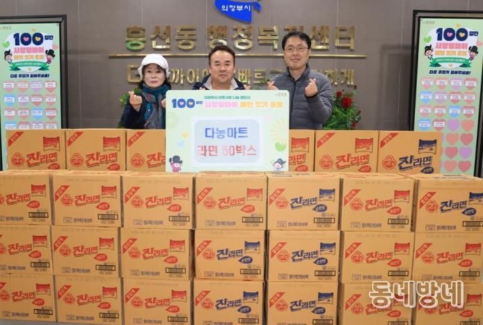 동네방네 김형규 기자 | 의정부시 흥선동행정복지센터는 12월 24일 다농마트가 ‘100일간 사랑릴레이 배턴 잇기’에 동참해 라면 50상자를 기탁했다고 밝혔다.